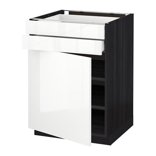 МЕТОД / МАКСИМЕРА Напольный шкаф с дверцей/2 ящиками - под дерево черный, Рингульт глянцевый белый, 60x60 см