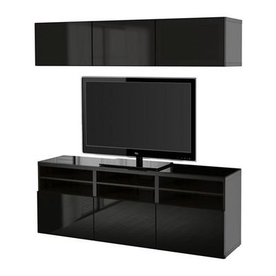БЕСТО Шкаф для ТВ, комбин/стеклян дверцы - направляющие ящика, плавно закр, черно-коричневый/Сельсвикен глянцевый/черный дымчатое стекло