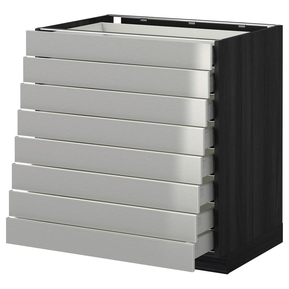 МЕТОД / МАКСИМЕРА Наполн шкаф 8 фронт/8 низк ящиков - под дерево черный, Гревста нержавеющ сталь, 80x60 см