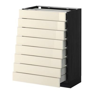 МЕТОД / МАКСИМЕРА Наполн шкаф 8 фронт/8 низк ящиков - 60x37 см, Рингульт глянцевый кремовый, под дерево черный
