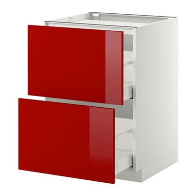 МЕТОД / МАКСИМЕРА Напольн шкаф/2фронт пнл/3ящика - 60x60 см, Рингульт глянцевый красный, белый