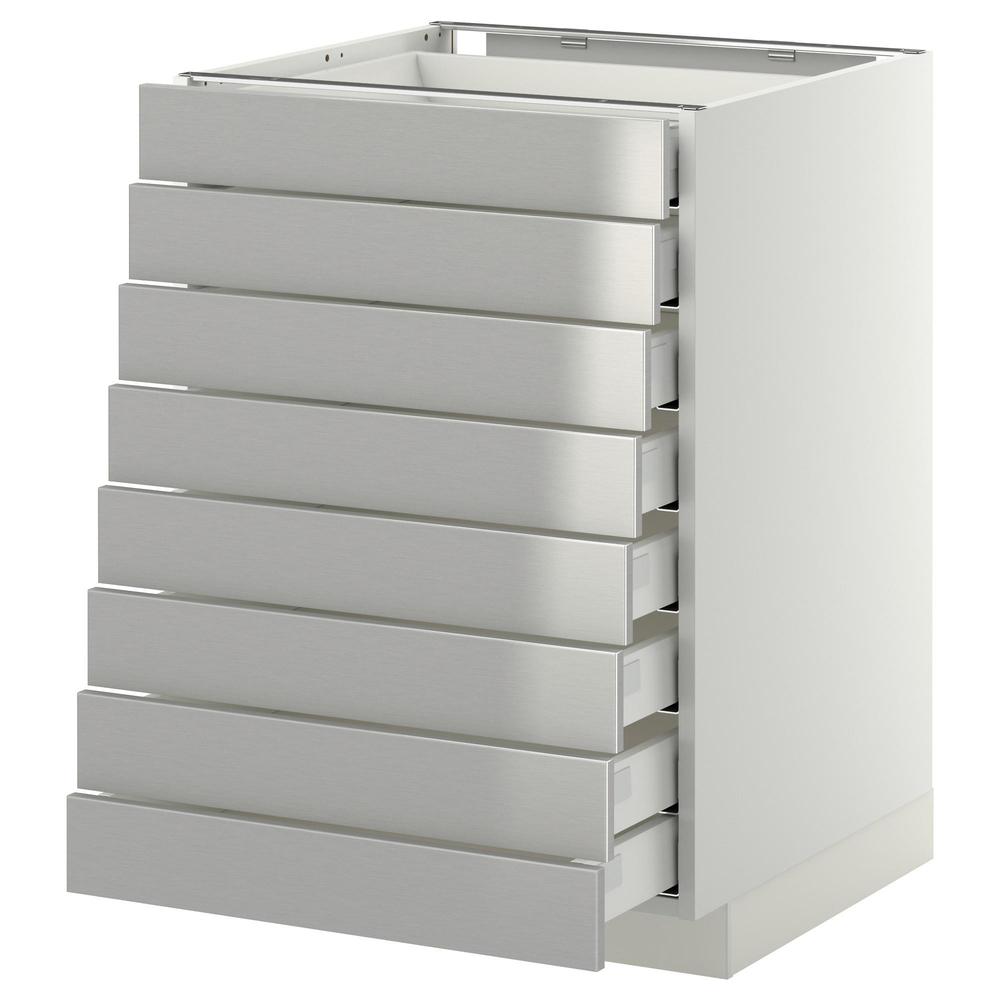МЕТОД / МАКСИМЕРА Наполн шкаф 8 фронт/8 низк ящиков - белый, Гревста нержавеющ сталь, 60x60 см
