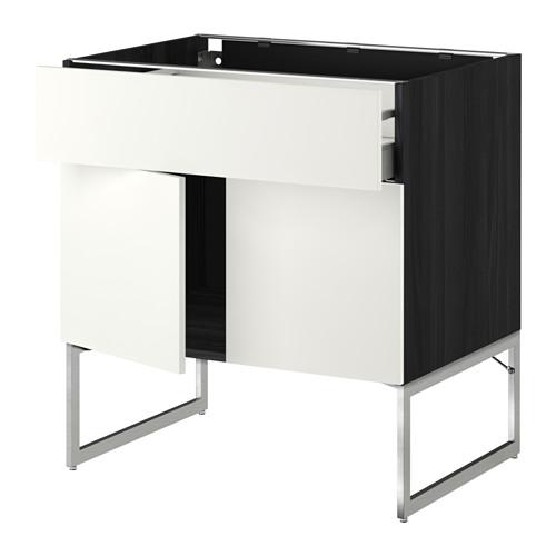 МЕТОД / МАКСИМЕРА Напол шкаф/полки/ящик/2двери - под дерево черный, Хэггеби белый, 80x60x60 см