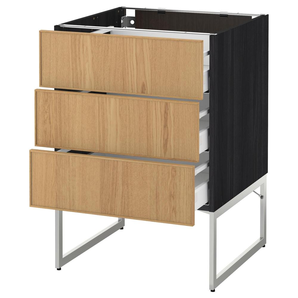 МЕТОД / МАКСИМЕРА Нплн шк 3 фрнт/3 средн ящика - под дерево черный, Экестад дуб, 60x60x60 см