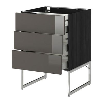 МЕТОД / МАКСИМЕРА Нплн шк 3 фрнт/3 средн ящика - 60x60x60 см, Рингульт глянцевый серый, под дерево черный
