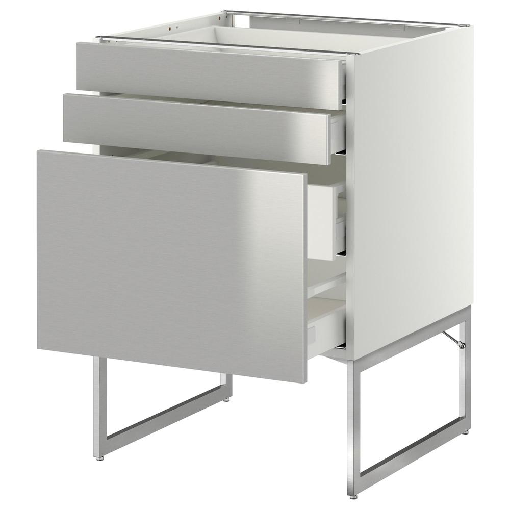 МЕТОД / МАКСИМЕРА Напольн шкаф 3фронт пнл/2низ/2ср ящ - белый, Гревста нержавеющ сталь, 60x60x60 см