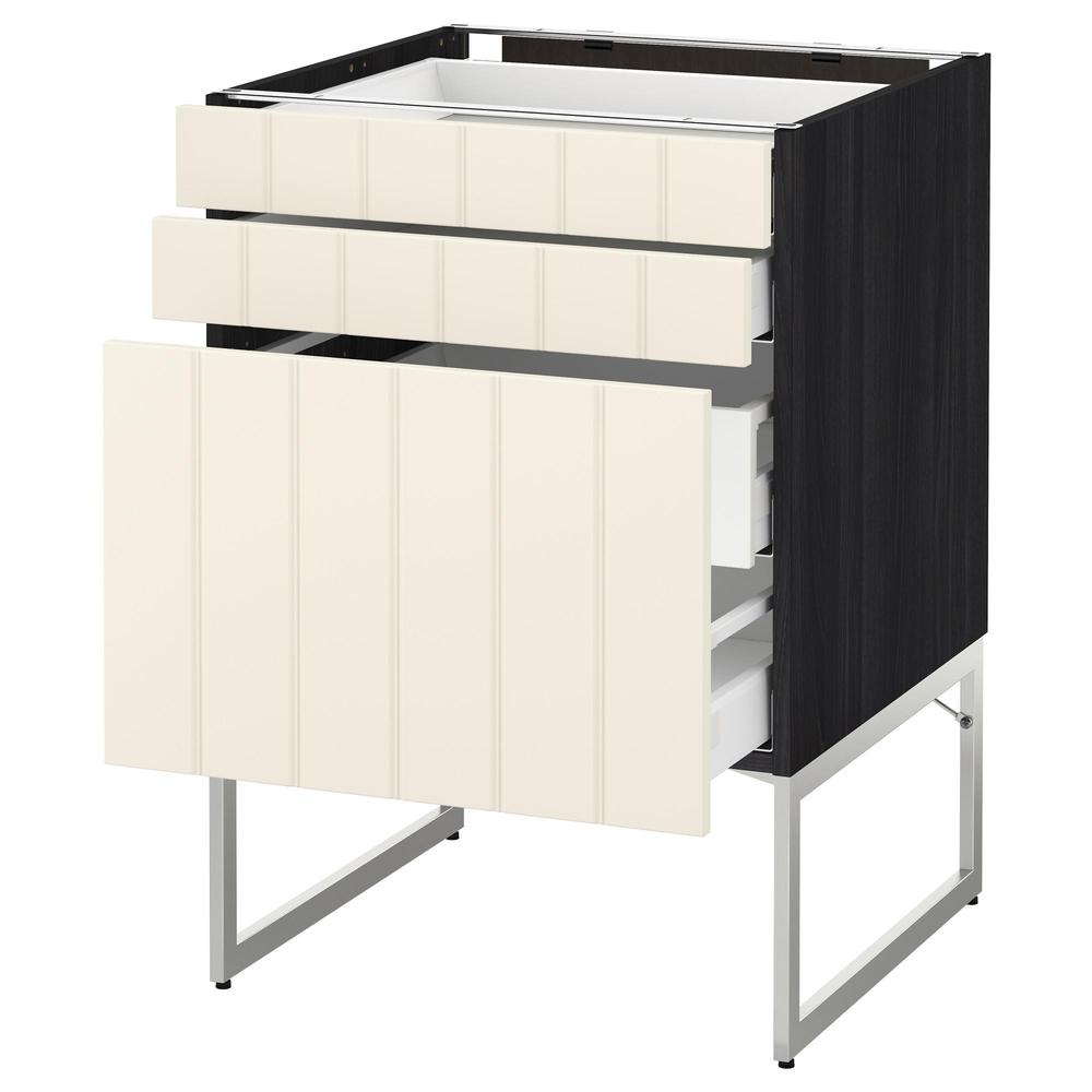 МЕТОД / МАКСИМЕРА Напольн шкаф 3фронт пнл/2низ/2ср ящ - под дерево черный, Хитарп белый с оттенком, 60x60x60 см