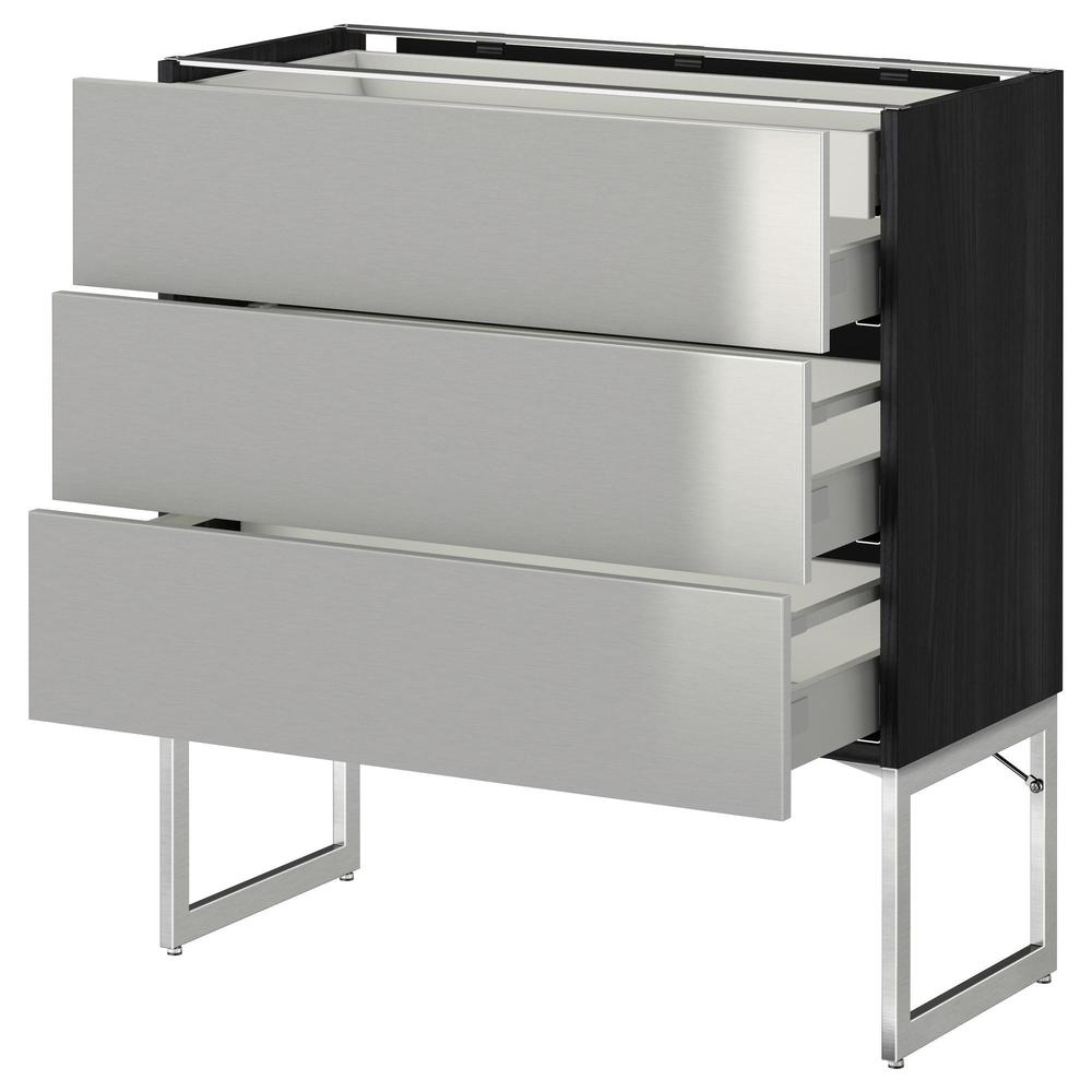МЕТОД / МАКСИМЕРА Напольн шкаф 3фронт пнл/2низ/2ср ящ - под дерево черный, Гревста нержавеющ сталь, 80x37x60 см