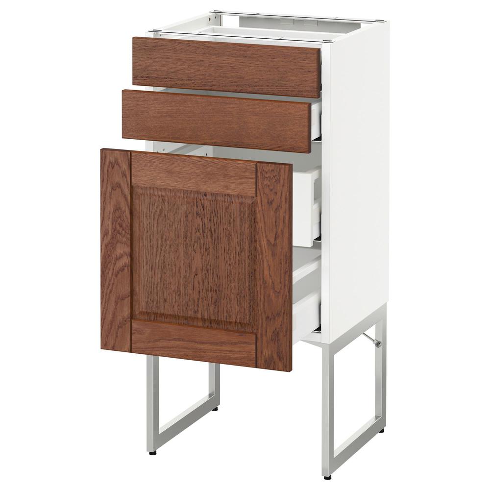 МЕТОД / МАКСИМЕРА Напольн шкаф 3фронт пнл/2низ/2ср ящ - белый, Филипстад коричневый, 40x37x60 см