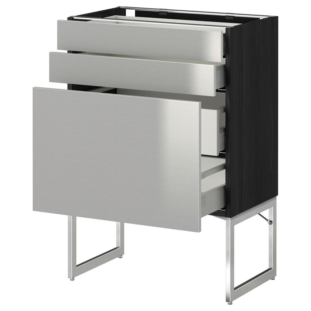 МЕТОД / МАКСИМЕРА Напольн шкаф 3фронт пнл/2низ/2ср ящ - под дерево черный, Гревста нержавеющ сталь, 60x37x60 см