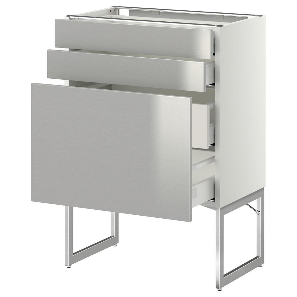 МЕТОД / МАКСИМЕРА Напольн шкаф 3фронт пнл/2низ/2ср ящ - белый, Гревста нержавеющ сталь, 60x37x60 см