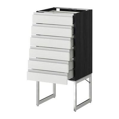 МЕТОД / МАКСИМЕРА Напольн шкаф 6фронт пнл/6 низ ящ - 40x37x60 см, Нодста белый/алюминий, под дерево черный