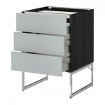 МЕТОД / МАКСИМЕРА Напольн шкаф/3фронт пнл/3ящика - 80x60x60 см, Веддинге серый, под дерево черный