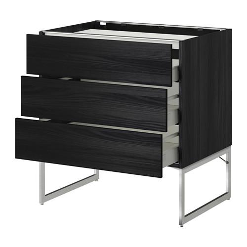 МЕТОД / МАКСИМЕРА Напольн шкаф/3фронт пнл/3ящика - под дерево черный, Тингсрид под дерево черный, 80x60x60 см