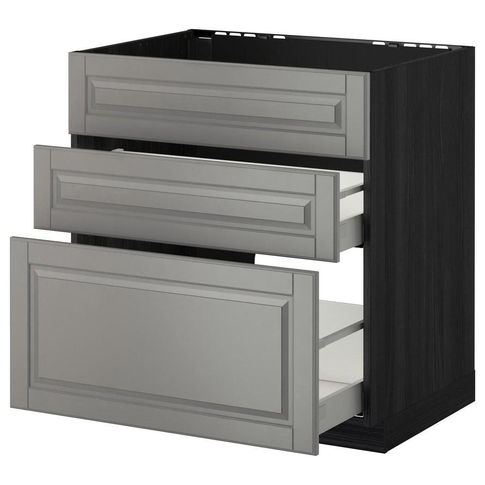 МЕТОД / МАКСИМЕРА Напольн шк п-мойку+3фрнт пнл/2ящ - под дерево черный, Будбин серый, 80x60 см