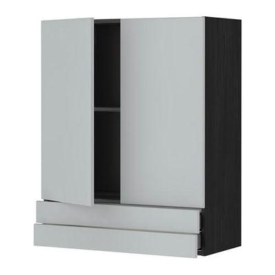 МЕТОД / МАКСИМЕРА Навесной шкаф/2дверцы/2ящика - 80x100 см, Веддинге серый, под дерево черный