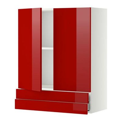 МЕТОД / МАКСИМЕРА Навесной шкаф/2дверцы/2ящика - 80x100 см, Рингульт глянцевый красный, белый