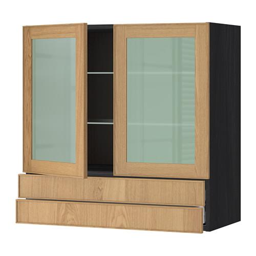 МЕТОД / МАКСИМЕРА Навесной шкаф/2 стек дв/2 ящика - под дерево черный, Экестад дуб, 80x80 см
