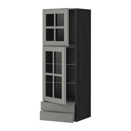 МЕТОД / МАКСИМЕРА Навесной шкаф/2 стек дв/2 ящика - под дерево черный, Будбин серый, 40x120 см