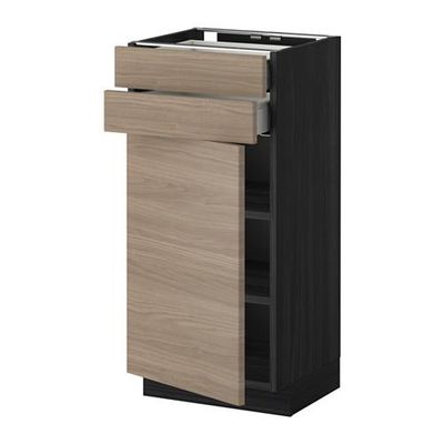 МЕТОД / МАКСИМЕРА Напольный шкаф с дверцей/2 ящиками - 40x37 см, Брокхульт под грецкий орех светло-серый, под дерево черный