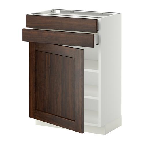 МЕТОД / МАКСИМЕРА Напольный шкаф с дверцей/2 ящиками - белый, Эдсерум под дерево коричневый, 60x37 см