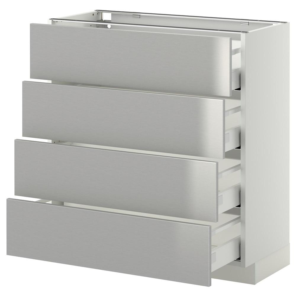 МЕТОД / МАКСИМЕРА Напольн шкаф 4 фронт панели/4 ящика - белый, Гревста нержавеющ сталь, 80x37 см