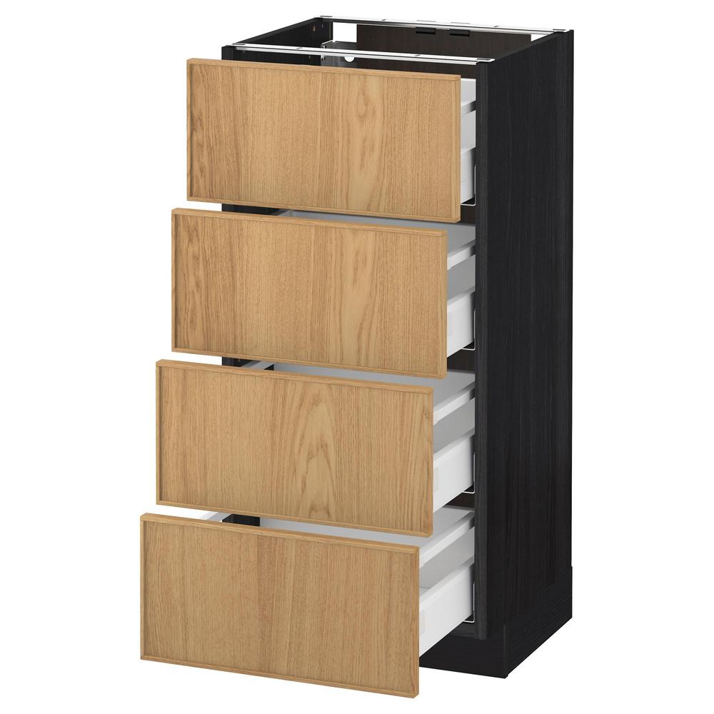 МЕТОД / МАКСИМЕРА Напольн шкаф 4 фронт панели/4 ящика - под дерево черный, Экестад дуб, 40x37 см