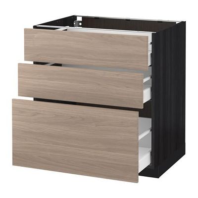 МЕТОД / МАКСИМЕРА Напольный шкаф с 3 ящиками - 80x60 см, Брокхульт под грецкий орех светло-серый, под дерево черный