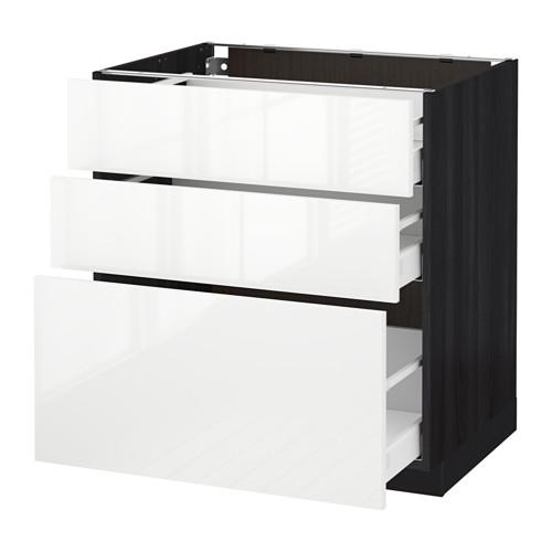 МЕТОД / МАКСИМЕРА Напольный шкаф с 3 ящиками - под дерево черный, Рингульт глянцевый белый, 80x60 см