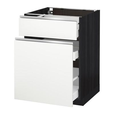 МЕТОД / МАКСИМЕРА Напольн шкаф/выдвижн секц/ящик - 60x60 см, Нодста белый/алюминий, под дерево черный