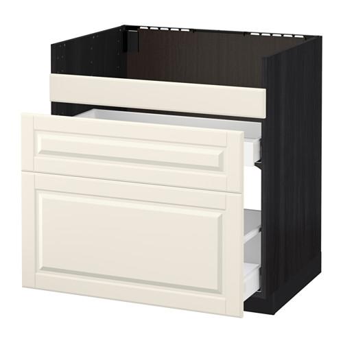 МЕТОД / МАКСИМЕРА Нап шкаф п/мойку ДУМШЁ/3фасада/2ящ - под дерево черный, Будбин белый с оттенком, 80x60 см