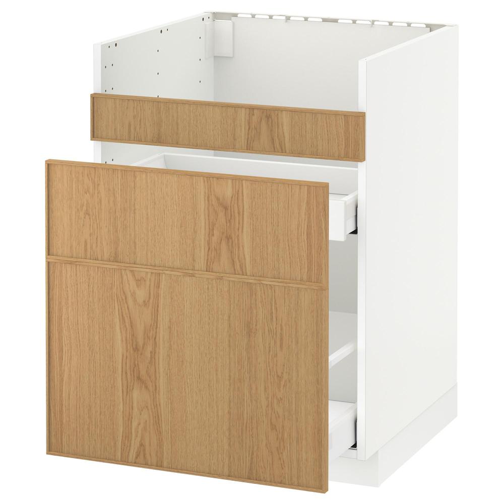 МЕТОД / МАКСИМЕРА Нап шкаф п/мойку ДУМШЁ/3фасада/2ящ - белый, Экестад дуб, 60x60 см