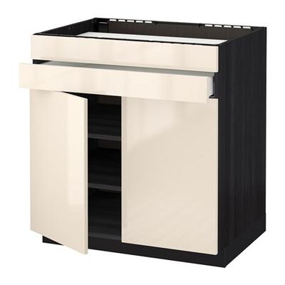 МЕТОД / МАКСИМЕРА Нап шк д/вар панели/2ящ/2фасада/1ящ - Рингульт глянцевый кремовый, под дерево черный