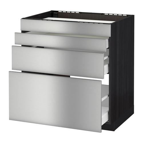 МЕТОД / МАКСИМЕРА Нап шкаф д/духовки/4фасада/3ящика - под дерево черный, Гревста нержавеющ сталь, 80x60 см
