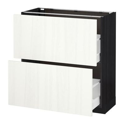 МЕТОД / МАКСИМЕРА Напольный шкаф с 2 ящиками - 80x37 см, Росдаль белый ясень, под дерево черный