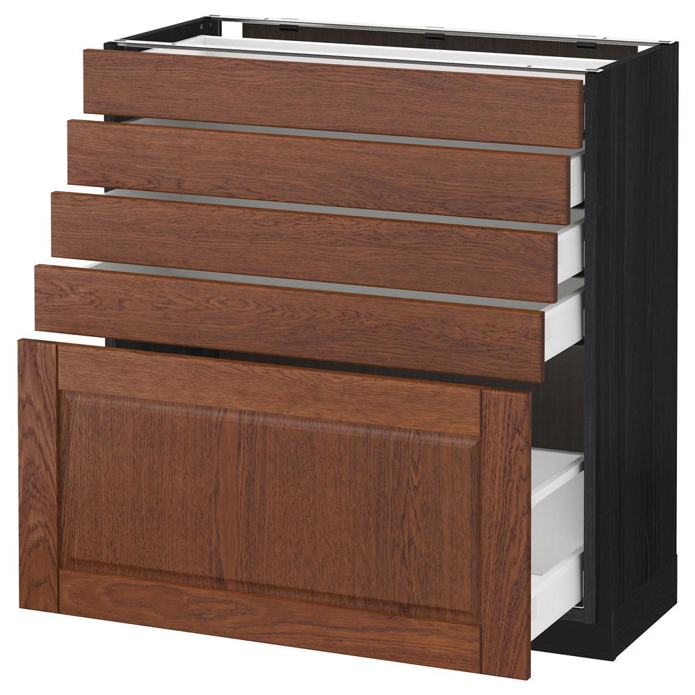 МЕТОД / МАКСИМЕРА Напольный шкаф с 5 ящиками - под дерево черный, Филипстад коричневый, 80x37 см