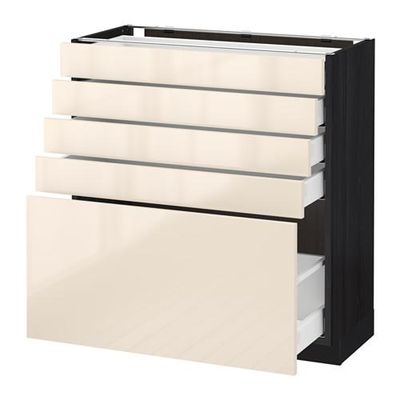 МЕТОД / МАКСИМЕРА Напольный шкаф с 5 ящиками - 80x37 см, Рингульт глянцевый кремовый, под дерево черный