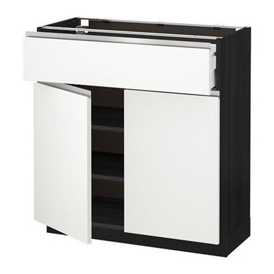 МЕТОД / МАКСИМЕРА Напольный шкаф+ящик/2дверцы - 80x37 см, Нодста белый/алюминий, под дерево черный