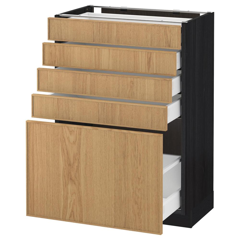 МЕТОД / МАКСИМЕРА Напольный шкаф с 5 ящиками - под дерево черный, Экестад дуб, 60x37 см