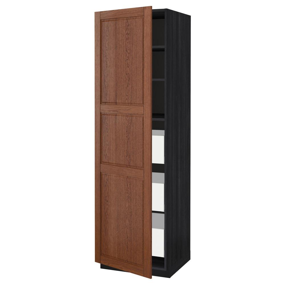 МЕТОД / МАКСИМЕРА Высокий шкаф с ящиками - под дерево черный, Филипстад коричневый, 60x60x200 см