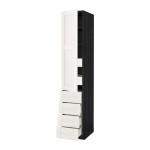 МЕТОД / МАКСИМЕРА Выс шкаф с плк/6 ящк/ дверц/4 фрнт - под дерево черный, Сэведаль белый, 40x60x220 см