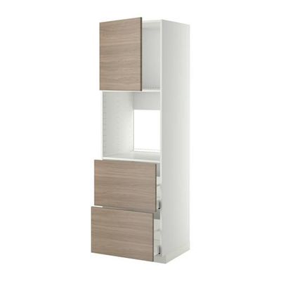 МЕТОД / МАКСИМЕРА Выс шк д/дхвк+двр/2фрнт/2выс ящ - 60x60x200 см, Брокхульт под грецкий орех светло-серый, белый