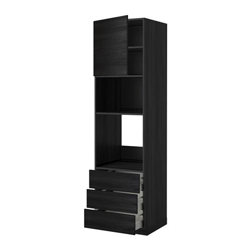 МЕТОД / МАКСИМЕРА Высок шкаф д/духовки/СВЧ/дверца/3ящ - под дерево черный, Тингсрид под дерево черный, 60x60x220 см