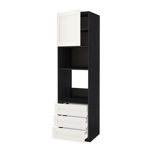 МЕТОД / МАКСИМЕРА Высок шкаф д/духовки/СВЧ/дверца/3ящ - под дерево черный, Сэведаль белый, 60x60x220 см