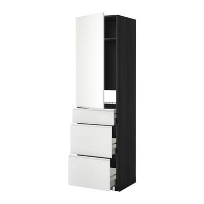 МЕТОД / МАКСИМЕРА Выс шкаф д/холодильн, с дврц/3 ящ - Нодста белый/алюминий, под дерево черный