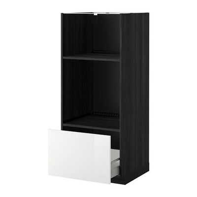 МЕТОД / МАКСИМЕРА Высокий шкаф с ящиком д/духовки/СВЧ - Рингульт глянцевый белый, под дерево черный