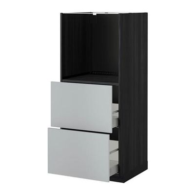 МЕТОД / МАКСИМЕРА Высокий шкаф с 2 ящиками д/духовки - Веддинге серый, под дерево черный
