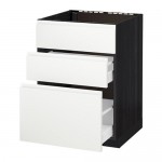 МЕТОД / МАКСИМЕРА Напольн шк п-мойку+3фрнт пнл/2ящ - под дерево черный, Воксторп белый, 60x60 см