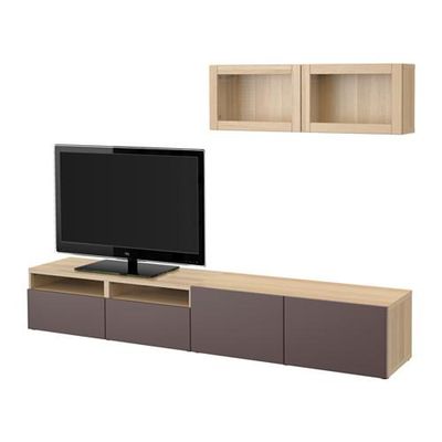 БЕСТО Шкаф для ТВ, комбин/стеклян дверцы - под беленый дуб/Вальвикен темно-коричневый, прозрачное стекло, направляющие ящика, плавно закр