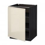 МЕТОД Напольный шкаф с полками - под дерево черный, Воксторп глянцевый светло-бежевый, 40x37 см